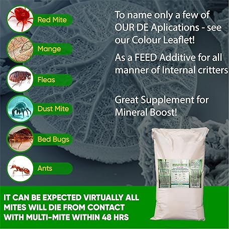 Sản phẩm Multi-Mite 5KG DIATOMACEOUS EARTH Feed Grade DE Special Grade - 100% Natural - Red Mite Fleas & All Animal Lice Control Powder đang được bán với giá ưu đãi là $35.6321 tại nước Anh.