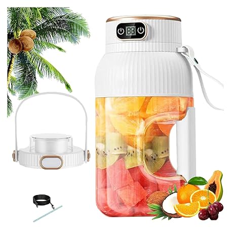 Multifunctional Portable Juicer Cup with Digital Display,Portable Smoothie Blender on The Go,Large Capacity Portable Blender USB Rechargeable,for Shakes and Smoothies, Fruits and Veggies(White)
