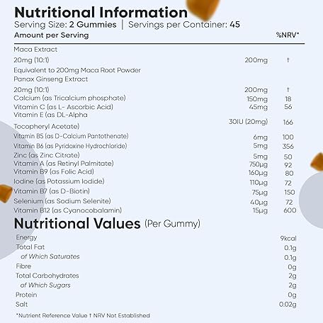 Thông tin sản phẩm Multivitamin Gummies for Men | 90 Vegan Gummies | with Added Herbal Extracts Like Maca, Panax Ginseng | 8 Multivitamins and 4 Minerals | Mixed Peach & Orange Flavour | Gluten-Free & Non-GMO