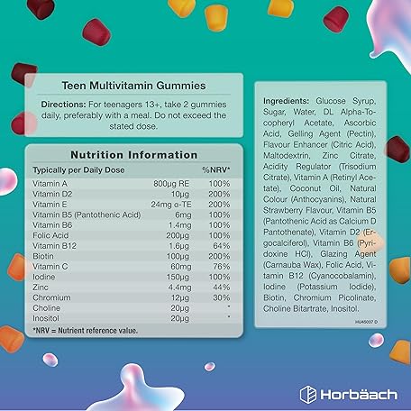 Thông tin sản phẩm Multivitamin Gummies for Teenagers | 60 Count | A- Z Multivitamin Complex with Vitamin A, B12, C, D, and Zinc | Berry Flavour for Teens | Vegetarian and Vegan Supplement | by Horbaach