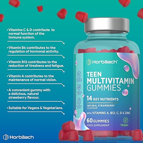 Sản phẩm Multivitamin Gummies for Teenagers | 60 Count | A- Z Multivitamin Complex with Vitamin A, B12, C, D, and Zinc | Berry Flavour for Teens | Vegetarian and Vegan Supplement | by Horbaach đang được bán với giá ưu đãi là $14.3226 tại nước Anh.