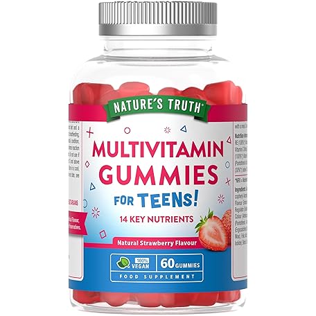 Sản phẩm Multivitamin Gummies for Teens | 60 Vegan Gummies | with Vitamin A, C, D, B12, and Zinc | 14 Key Nutrients | Strawberry Flavour | Nature's Truth đang được bán với giá ưu đãi là $14.5297 tại nước Anh.