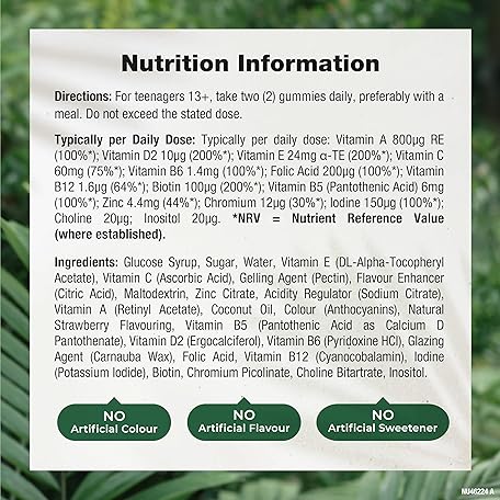 Thông tin sản phẩm Multivitamin Gummies for Teens | 60 Vegan Gummies | with Vitamin A, C, D, B12, and Zinc | 14 Key Nutrients | Strawberry Flavour | Nature's Truth