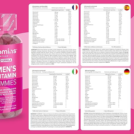 Thông tin sản phẩm Multivitamin Gummies for Women - 23 Vitamins, Minerals & Probiotics for Women - Marine Collagen, Hyaluronic Acid, Folic Acid, Vitamin D, A, C, B, Biotin & Zinc – 60 Vitamin Gummies - Novomins