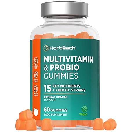 Multivitamin ProBio Gummies for Women and Men | 60 Count | Orange Flavour | 15 Essential Nutrients with 3 Biotic Strains for Daily Support | 5 Billion CFU | Vegan Supplement | by Horbaach