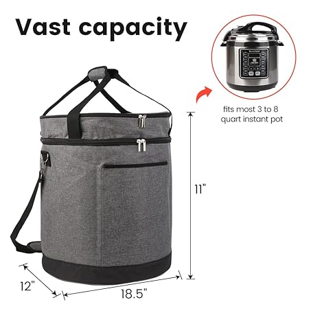 Thông tin sản phẩm musbus Carry Bag for 8 Quart Instant Pot, CrockPot and Hamilton Beach Models, Double Layers Carrier with Adjustable Strap, with Crock-Pot and Hamilton, GRAY