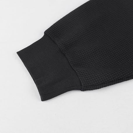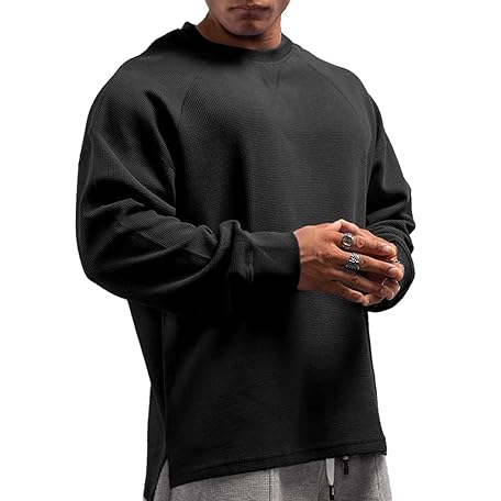 Muscle Alive Men's Basic Long Sleeve Waffle Sweatshirt Loose Fit Workout Pullover Crewneck Shirt Black M