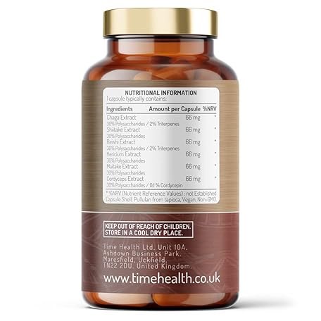 Thương hiệu Time Health là cái tên nổi tiếng được rất nhiều khách hàng trên thế giới chọn lựa. Với kiểu dáng đẹp mắt, sang trọng, sản phẩm Mushroom Complex 6 | 120 Capsules | Maximum Strength 12000mg per Capsule | Chaga, Cordyceps, Shiitake, Reishi, Lions Mane, Maitake | Zero Additives | 100% Vegan | UK Made là sự lựa chọn hoàn hảo nếu bạn đang tìm mua một món cho riêng mình.