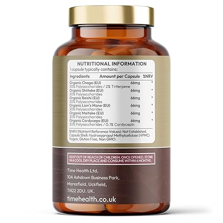 Thương hiệu Time Health là cái tên nổi tiếng được rất nhiều khách hàng trên thế giới chọn lựa. Với kiểu dáng đẹp mắt, sang trọng, sản phẩm Mushroom Complex 6 Organic – High Strength 30% Polysaccharides - Chaga, Cordyceps, Shiitake, Reishi, Lions Mane, Maitake - UK Manufactured (120 Capsules) là sự lựa chọn hoàn hảo nếu bạn đang tìm mua một món cho riêng mình.