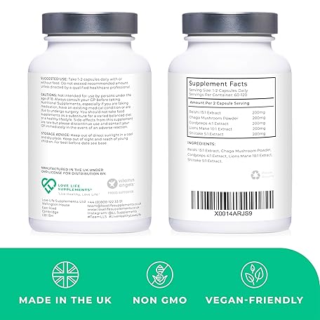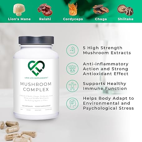 Sản phẩm Mushroom Complex by LLS | Contains 1000mg Reishi, Chaga, Cordyceps, Lions Mane and Shiitake Mushrooms | 120 Capsules - 2 Month Supply | No Fillers | Vegan | Love Life Supplements đang được bán với giá ưu đãi là $40.8423 tại nước Anh.