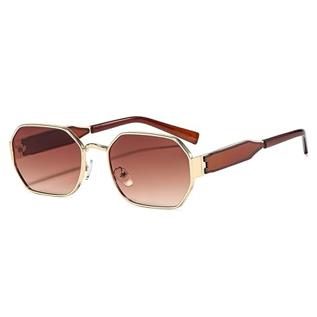 MUTYNE Women Polygon Metal Frame Sunglasses Retro Personality Simple Sun Glasses Fashion Uv400 Shades(Tea)