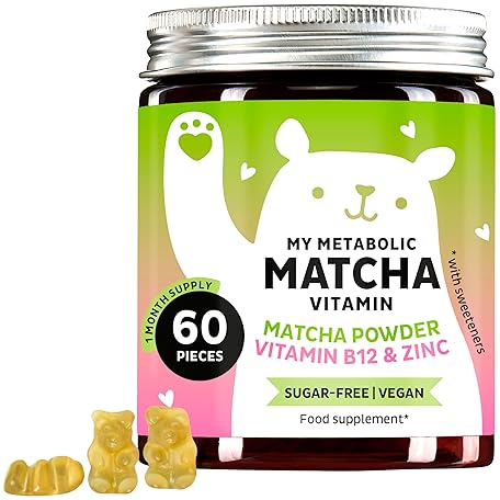 My Metabolic Matcha Vitamin Gummies – Natural Energy Supplement – Antioxidant – with Matcha, Coenzyme Q10, Zinc, Vitamin B12 – 60 Pieces – Sugar-Free, Vegan – Bears with Benefits
