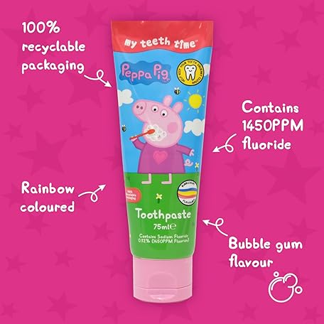 Thương hiệu Peppa Pig là cái tên nổi tiếng được rất nhiều khách hàng trên thế giới chọn lựa. Với kiểu dáng đẹp mắt, sang trọng, sản phẩm My Teeth Time Peppa Pig Toothpaste, Kids Toothpaste, Dental Care for 3-8 Year olds Bubble Gum Flavour, Rainbow Striped, 75ml là sự lựa chọn hoàn hảo nếu bạn đang tìm mua một món cho riêng mình.