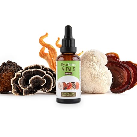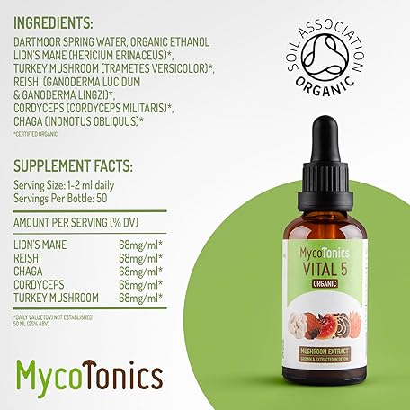 Thông tin sản phẩm MycoTonics Vital 5 Mushroom Tincture 50ml | Mushroom Supplement | Mushroom Extract: Support for Your Immune System | Lion's Mane, Reishi, Chaga, Cordyceps & Turkey Mushroom Blend | Mushroom Drops