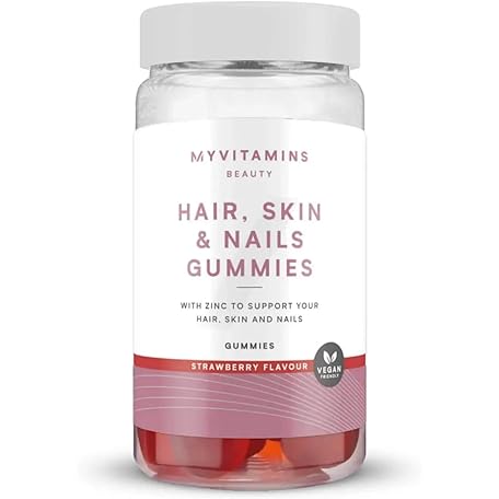 MyVitamins Hair, Skin and Nails Gummies – Biotin Hair Growth, Zinc & Vitamin C – Hair Vitamins for Women & Men – Hair Growth & Skin Support – Strawberry Gummies – 60 Vegan Chewable Supplements