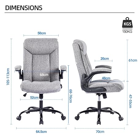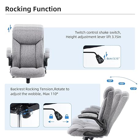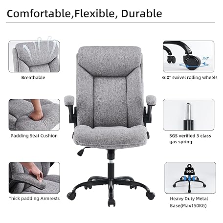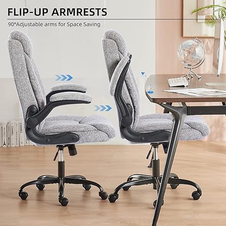 Thông tin sản phẩm MZLEE Executive Office Chair, Ergonomic Computer Desk Chair Swivel Work Chair with Flip-up Armrest, Adjustable Height, Comfortable for Office Home Gaming(Grey Fabric)