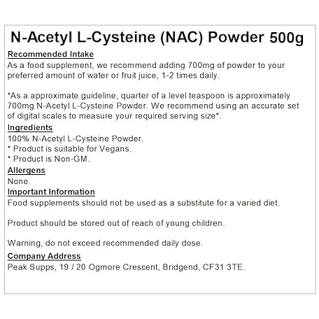 Sản phẩm N-Acetyl L-Cysteine Powder 500g - Pure NAC | Vegan Friendly, GMO Free đang được bán với giá ưu đãi là $44.0578 tại nước Anh.