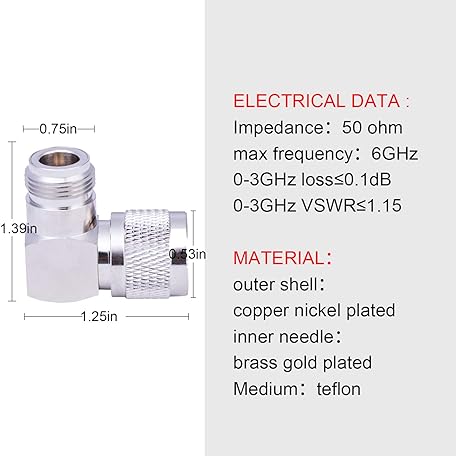 Sản phẩm N Connector Adapter Right Angle Coax Connectors 90 Degree N Male to N Female RF Coaxial Cable Connector Pack of 2 by XRDS_RF đang được bán với giá ưu đãi là $23.7511 tại nước Anh.