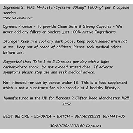 Sản phẩm NAC N-Acetyl-Cysteine 1600mg High Strength Per Serving – 120 Vegan Friendly Capsules- 100% Natural, No Fillers or Binders – Made in The UK by 5greens đang được bán với giá ưu đãi là $23.5331 tại nước Anh.