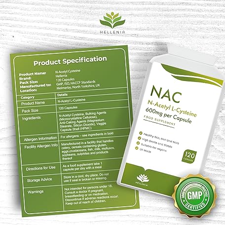 Thương hiệu Hellenia là cái tên nổi tiếng được rất nhiều khách hàng trên thế giới chọn lựa. Với kiểu dáng đẹp mắt, sang trọng, sản phẩm NAC N-Acetyl-Cysteine 600mg | 120 Vegan Capsules | NAC Supplement | Vegan NAC Supplement | High Strength & High Bioavailability - Manufactured in The UK by Hellenia  là sự lựa chọn hoàn hảo nếu bạn đang tìm mua một món  cho riêng mình.