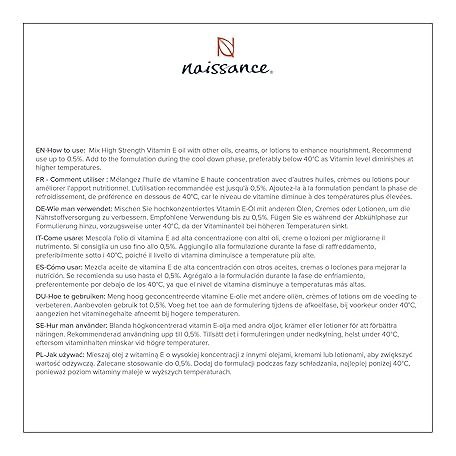 Thông tin sản phẩm Naissance High Strength Pure Vitamin E oil 29,500 IU - 30ml - Natural Antioxidant Plant-Based Vegan Liquid Drops for Skin, Face, Body, Nails, DIY Beauty Blends