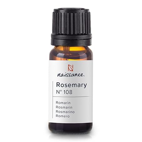 Naissance Rosemary Essential Oil (No. 108) - 10ml - Pure, Natural, Cruelty Free, Vegan, Steam Distilled and Undiluted - Use in Aromatherapy, Massage Blends, Humidifiers & Diffusers