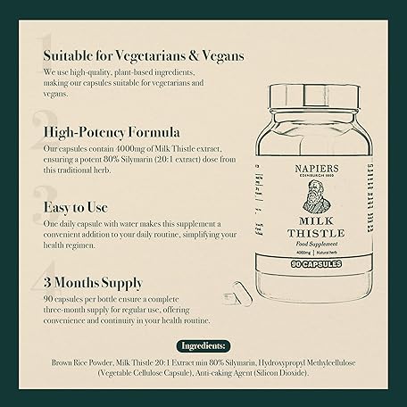Sản phẩm Napiers Milk Thistle High Strength - 4000mg per Capsule with Concentrated Silymarin 80% - Liver Cleanse & Detox - 90 Vegan Capsules (3 Months Supply) đang được bán với giá ưu đãi là $43.8616 tại nước Anh.