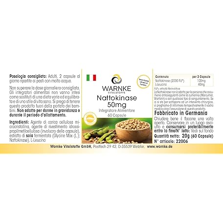 Thương hiệu WARNKE VITALSTOFFE là cái tên nổi tiếng được rất nhiều khách hàng trên thế giới chọn lựa. Với kiểu dáng đẹp mắt, sang trọng, sản phẩm Nattokinase 50mg, Fermented, 2000 FU per Day, Vegan, 60 Capsules | Warnke Vitalstoffe - German Pharmacy Quality là sự lựa chọn hoàn hảo nếu bạn đang tìm mua một món cho riêng mình.