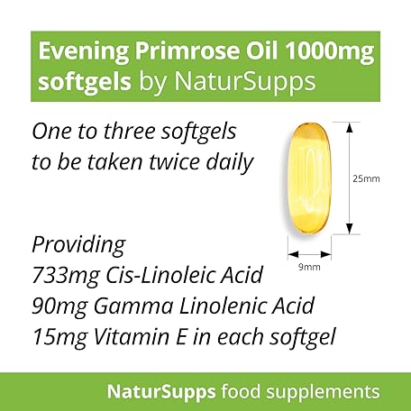 Thông tin sản phẩm Natur Supps Evening Primrose Oil 1000mg, Cold Pressed, Omega 6, 90mg GLA, 733mg LA, Vitamin E, 120 Evening Primrose Oil Softgel Capsules, UK Made