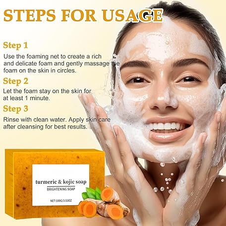 Thông tin sản phẩm Natural Turmeric Soap, Kojic Acid & Turmeric Soap, Kojic Acid Lemon Soap Bar, Acne, Dark Spots, Hyperpigmentation & Smooth Skin, Brightening, Deep Cleansing, Refreshing, Moisturizing