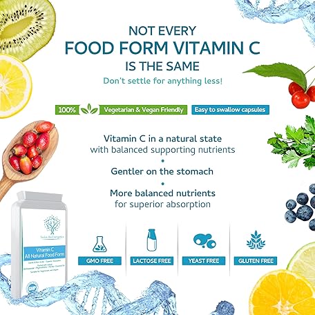 Thông tin sản phẩm Natural Vitamin C 120 Capsules – Optimum Absorption All-Natural Food Form - Gentle & Non-Acidic - Packed with Bioflavonoids, Pectins, Essential Oils & phytonutrients - NO Synthetic ascorbic Acid