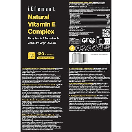 Thông tin sản phẩm Natural Vitamin E Complex, Tocopherols & Tocotrienols, 120 Softgels | with Extra Virgin Olive Oil | Antioxidant | 100% Natural Ingredients, Soy Free | Zenement