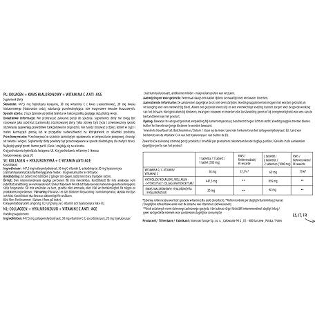 Thông tin sản phẩm Nature Diet - Collagen with Hyaluronic Acid and Vitamin C, 180 Tablets, 500 mg, Anti Ageing, Hydrolyzed Collagen (Pack of 2)