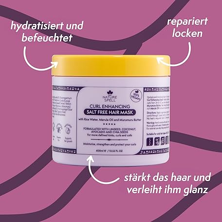 Thông tin sản phẩm Nature Spell Curl Enhancing Hair Mask, Defines and Repairs, with Rice Water & Linseed, For All Curl Types, Vegan, 400ml