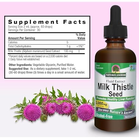 Sản phẩm NatureAnswer's Milk Thistle Seed, 2000 mg, 60ml (Large) đang được bán với giá ưu đãi là 0 tại nước Anh.