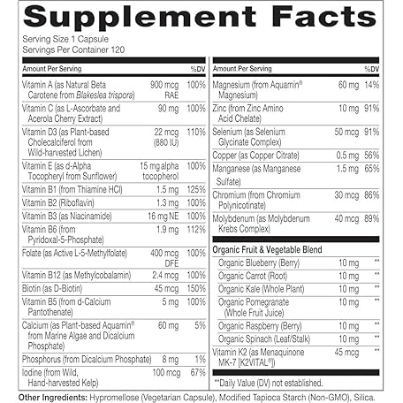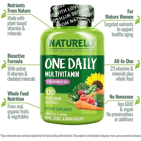 Thông tin sản phẩm NATURELO One Daily Multivitamin for Women (50+) - with Natural Food-Based Vitamins, Minerals, Fruit & Veg Extracts - Iron-Free Menopause Supplement - 120 Vegan Capsules |4 Month Supply