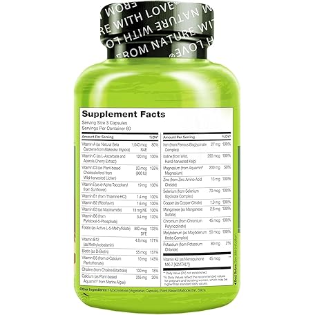 Thông tin sản phẩm NATURELO Prenatal Multivitamin - Natural Vitamins & Minerals - Active Folate, Iron & Calcium - Essential Nutrients During Pregnancy & Conception - No GMOs - 180 Vegan Capsules | 2 Month Supply
