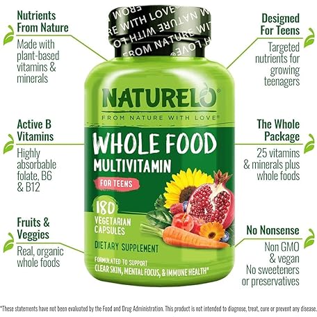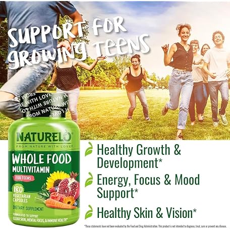 Thông tin sản phẩm NATURELO Whole Food Multivitamin for Teens - Natural Vitamin, Mineral & Plant Extracts for Teenage Boys & Girls - Daily Nutrients for Active Children - 180 Vegan Capsules | 3 Month Supply