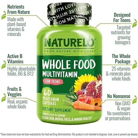 Thông tin sản phẩm NATURELO Whole Food Multivitamin for Teens - Natural Vitamin, Mineral & Plant Extracts for Teenage Boys & Girls - Daily Nutrients for Active Children - 60 Vegan Capsules | 1 Month Supply