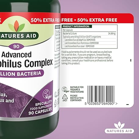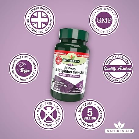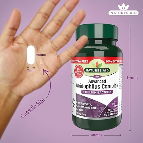 Sản phẩm Natures Aid Acidophilus Complex 5 Billion Bacteria CFU – High Strength Supplement Lactobacillus Acidophilus Rhamnosus Casei Supports Digestive & Immune Health – Vegan Gluten-Free Non-GMO 90 Capsules đang được bán với giá ưu đãi là $14.7586 tại nước Anh.
