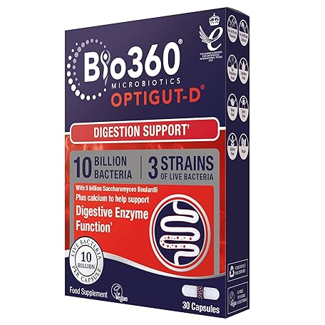 Sản phẩm Natures Aid Bio360 OptiGUT-D Probiotic 10 Billion Live Bacteria - High Strength Vegan Digestive Gut Health Support - Gut Health Supplement for Adults & Kids - Gluten Free, Non-GMO - 30 Capsules đang được bán với giá ưu đãi là $20.71 tại nước Anh.