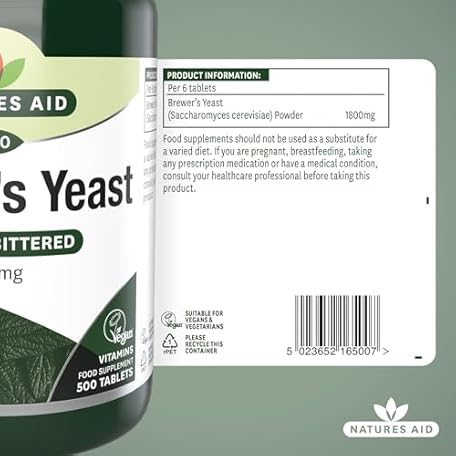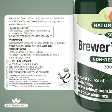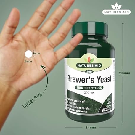 Thông tin sản phẩm Natures Aid Brewers Yeast 300mg - Natural Source of B-Vitamins, Amino Acids and Minerals - Supports Energy and Immune Health - Vegan, Gluten-Free, Non-GMO, No Salt or Sugar - 500 Tablets