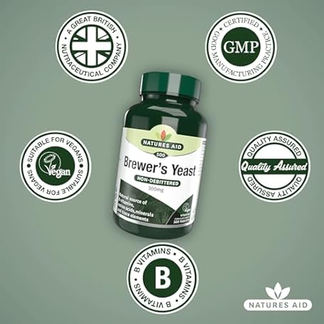 Sản phẩm Natures Aid Brewers Yeast 300mg - Natural Source of B-Vitamins, Amino Acids and Minerals - Supports Energy and Immune Health - Vegan, Gluten-Free, Non-GMO, No Salt or Sugar - 500 Tablets đang được bán với giá ưu đãi là $9.2977 tại nước Anh.