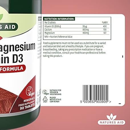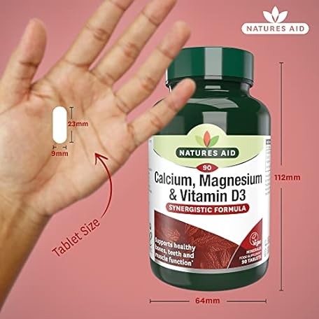 Thông tin sản phẩm Natures Aid Calcium Magnesium & Vitamin D3 - Supports Bones Teeth Muscle Function & Immunity Supplement - High Potency Calcium Absorption and Immune Health - Vegan, Non-GMO, Gluten-Free - 90 Tablets
