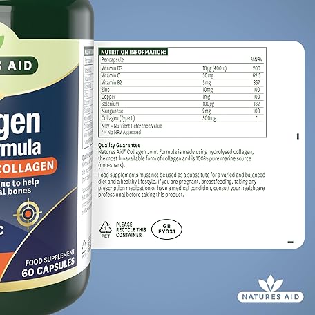 Thông tin sản phẩm Natures Aid Collagen Joint Formula - Vitamin C D3 Copper Manganese Zinc - Supports Cartilage, Bones and Joint Health - High Potency Marine Type II Supplement - Vegan Non-GMO Gluten-Free - 60 Capsules