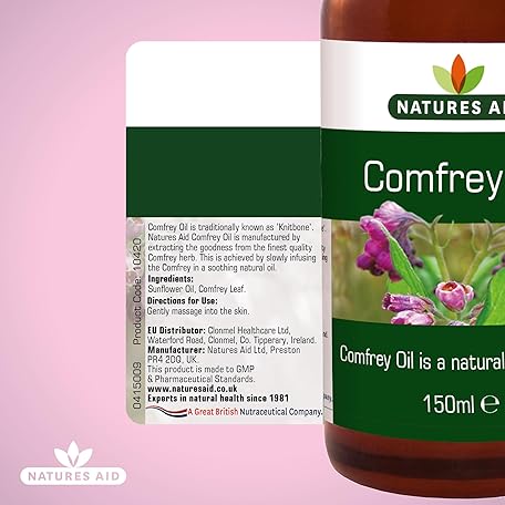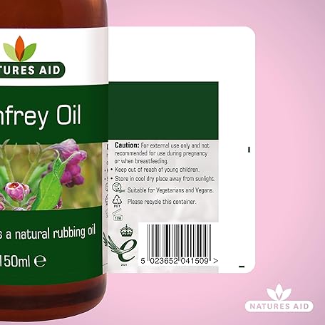 Sản phẩm Natures Aid Comfrey Oil 150ml - Natural Rubbing Oil for Healthy Skin and Muscle Wellness - Vegan, Non-GMO, Gluten-Free - Hydrates, Soothes and Moisturises - Made in The UK đang được bán với giá ưu đãi là $11.0308 tại nước Anh.