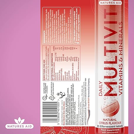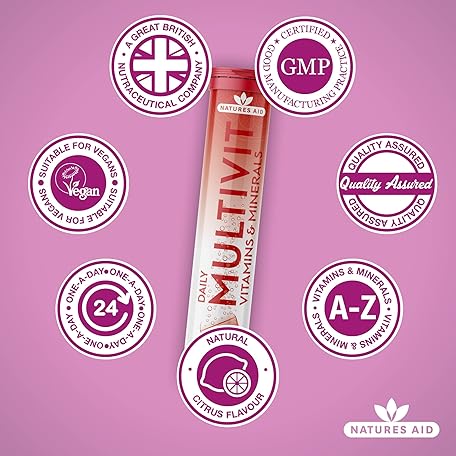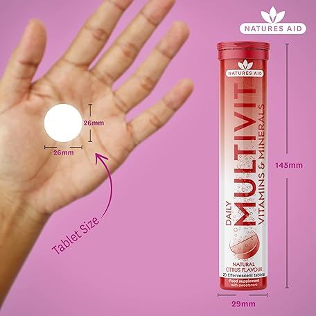Sản phẩm Natures Aid Daily Multivitamin Effervescent 20 Tablets - Supports Energy and Immune Health - High Strength Fizzy Supplement - Vegan, Gluten Free, Non-GMO - Natural Citrus Multi-Vitamin - 20 Tablets đang được bán với giá ưu đãi là $8.6655 tại nước Anh.