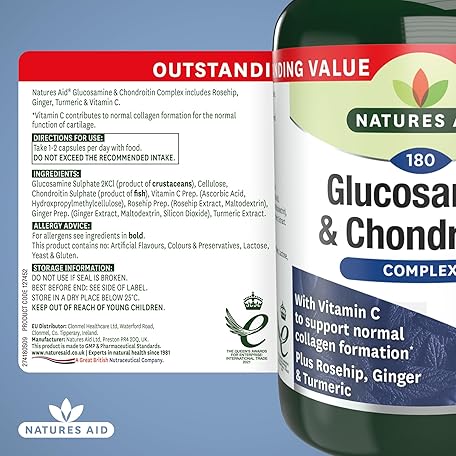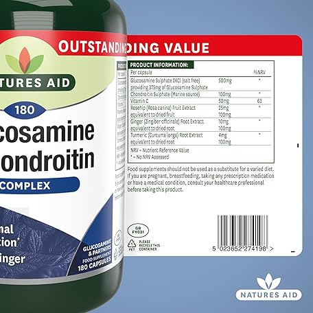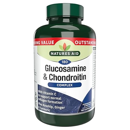 Sản phẩm Natures Aid Glucosamine & Chondroitin Complex - Rosehip Ginger Turmeric Vitamin C Supplement - Joint Support Mobility, Flexibility & Cartilage Health - Non-GMO, Gluten-Free - 180 Capsules đang được bán với giá ưu đãi là $23.8492 tại nước Anh.