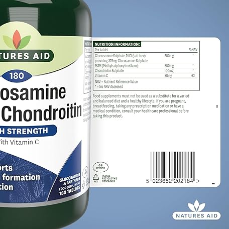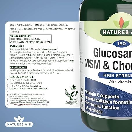 Sản phẩm Natures Aid Glucosamine MSM & Chondroitin with Vitamin C - High Strength Joint Support - Mobility & Cartilage Health, Collagen Formation - Non-GMO, Gluten-Free Supplement - 180 Tablets đang được bán với giá ưu đãi là $24.2416 tại nước Anh.