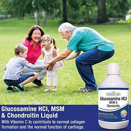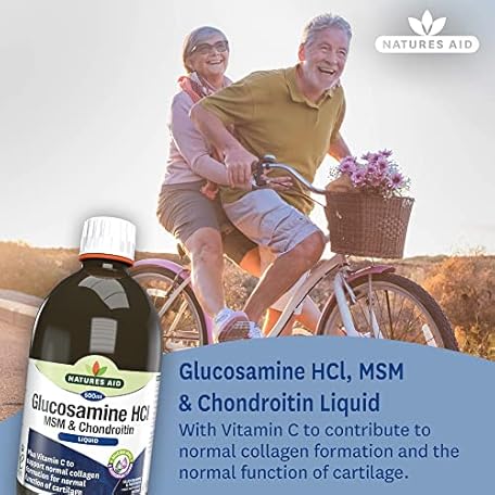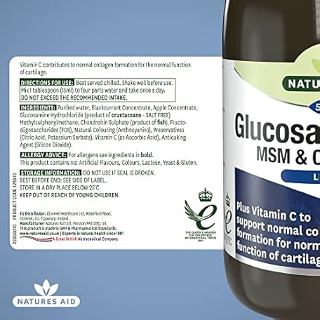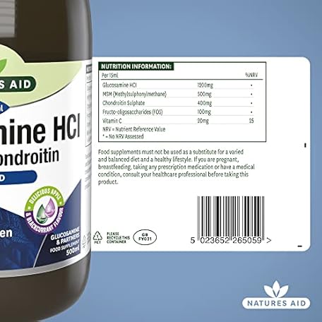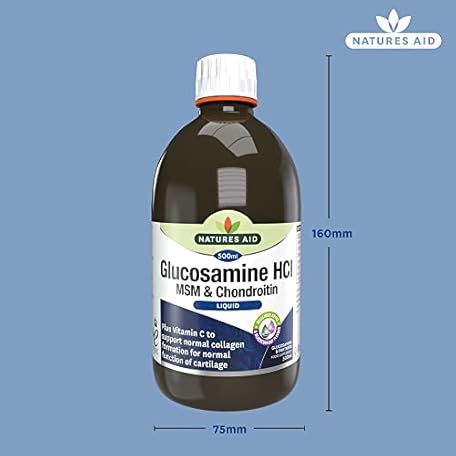 • Natures Aid Glucosamine MSM & Chondroitin with Vitamin C Liquid 500ml - High Strength Joint Support - Mobility & Cartilage Health, Collagen Formation, Non-GMO, Gluten-Free Supplement